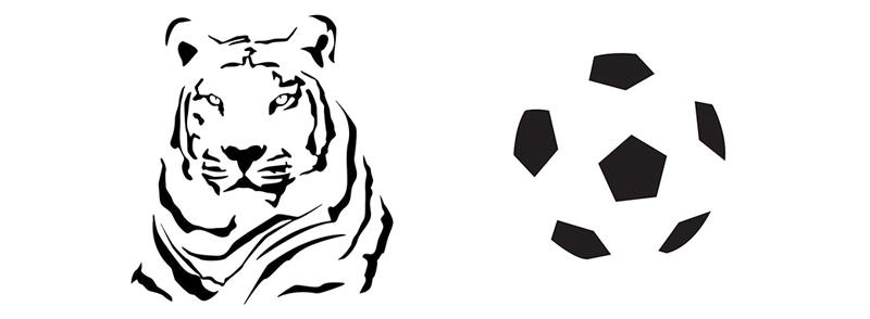 不仅如此,这个原理还适用于填充空缺的图形,我们的大脑能够自动填补空缺的部分,然后生成一个你熟悉的图案,这就是为什么我们能从这些空缺的图案里识别到出老虎和足球;