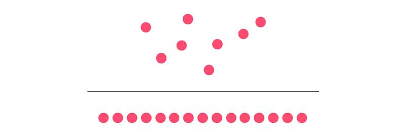 下图中能看出,排成直线的小红点看起来比随机摆放的小红点更具有相关性;我们的大脑倾向于将连续的形体看成某种形状,从而帮助我们通过解读信息与构图。