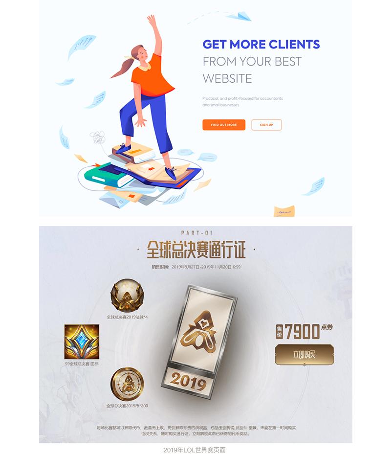 通过提取游戏内的元素移植到页面设计中,是游戏网页设计常用的思路,能够快速建立熟悉感与游戏代入感;而相似原则的反向运用就是设计焦点的创造,那是稳重求变,点睛一笔,我们会在后文提到;