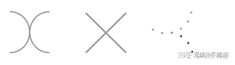 如上图左我们更倾向于将其看成两条相交的曲线,而不是两个相交的半圆。然而中间的我们会我们更倾向于将其看成两条相交的直线,而不是两个相交的菱形的两条边。右边图三我们往往倾向于使实现流跟随相同颜色的轨迹和方向。我们能够感知到这是两条弧线而不是多个圆点。还是一样来看看在界面中运用吧。