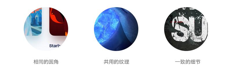 因为我们的大脑会将视觉属性相似的物体分成一个组,视觉属性主要指的是:大小、颜色、形状、方向等,再具体一些甚至可以是图标的圆角,元素的纹理共用,字体设计中的衬线装饰等等;