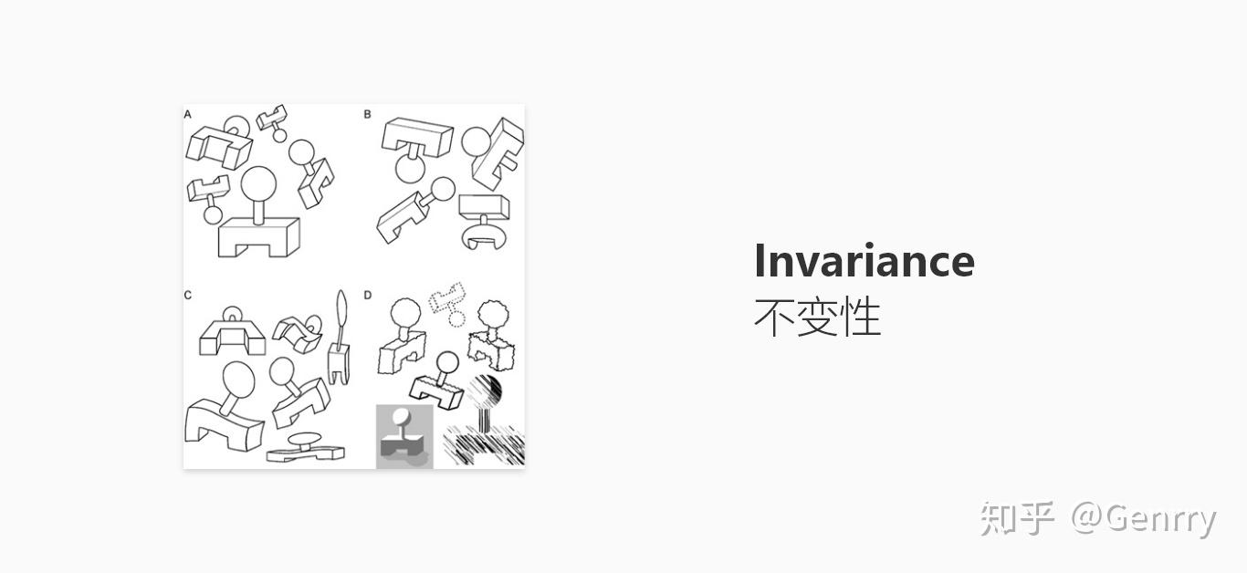 简单物体的识别与它们的旋转、平移和缩放无关,如上图。因为我们经常从不同的角度遇到物体,所以我们已经发展出一种能力来识别它们,尽管它们的外观不同。