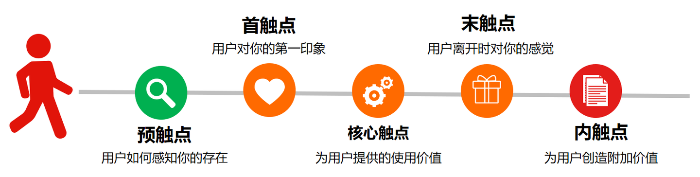 预触点:是指用户在来到你的产品或服务之前,会从什么地方了解你?是搜索引擎,还是社交媒体,还是朋友介绍?