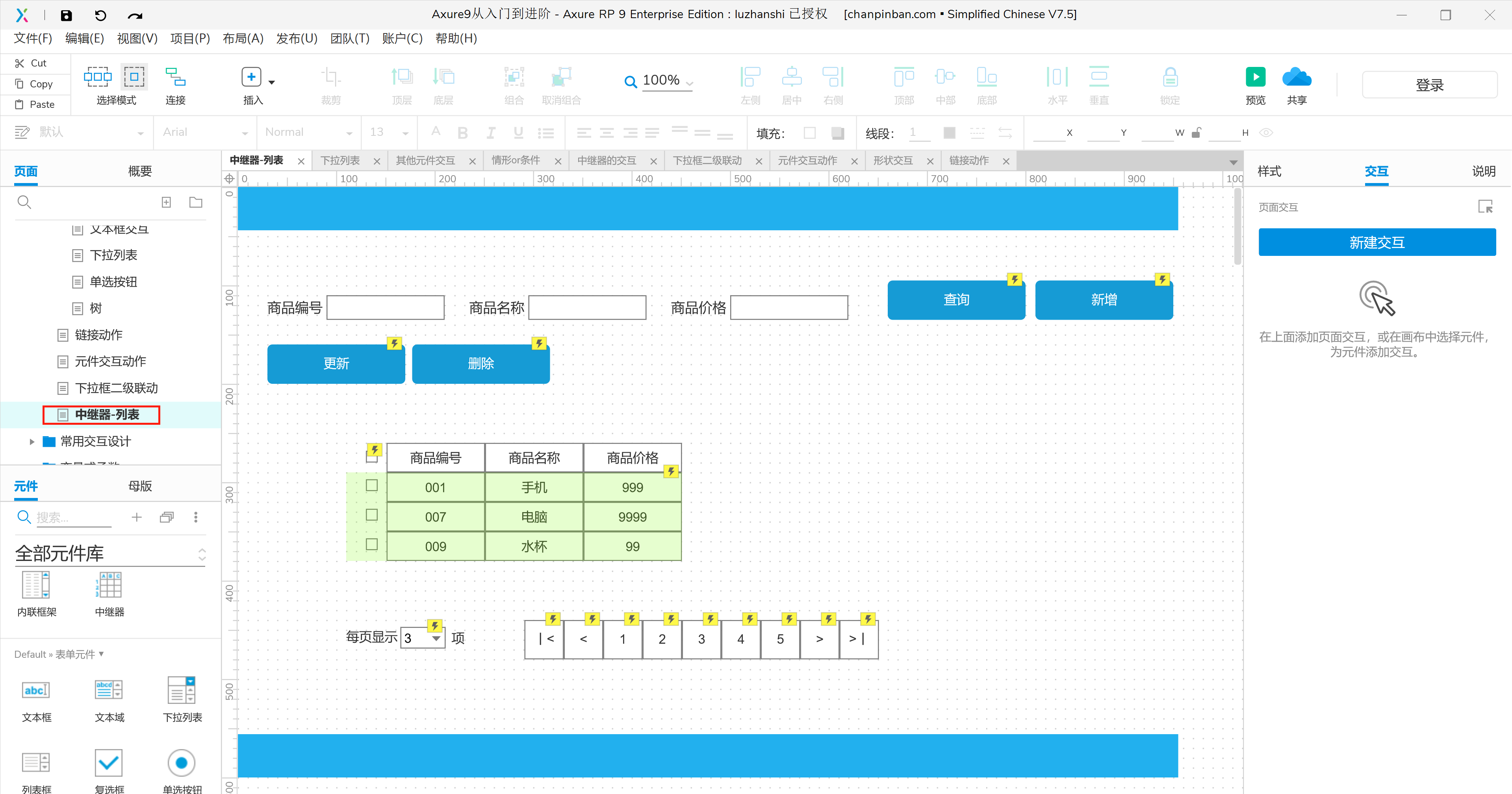 中继器实现列表增、删、改、查、排序、翻页、全选,参照原rp文件