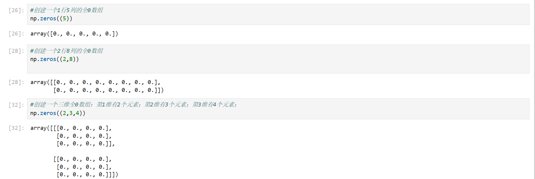 np.zeros(5) np.zeros([5,5]) np.zeros((5,5))