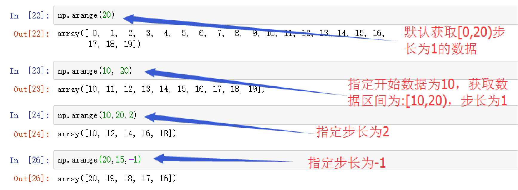 可以通过numpy模块中的常用的几个函数进行创建ndarray多维数组对象,主要函数如下: