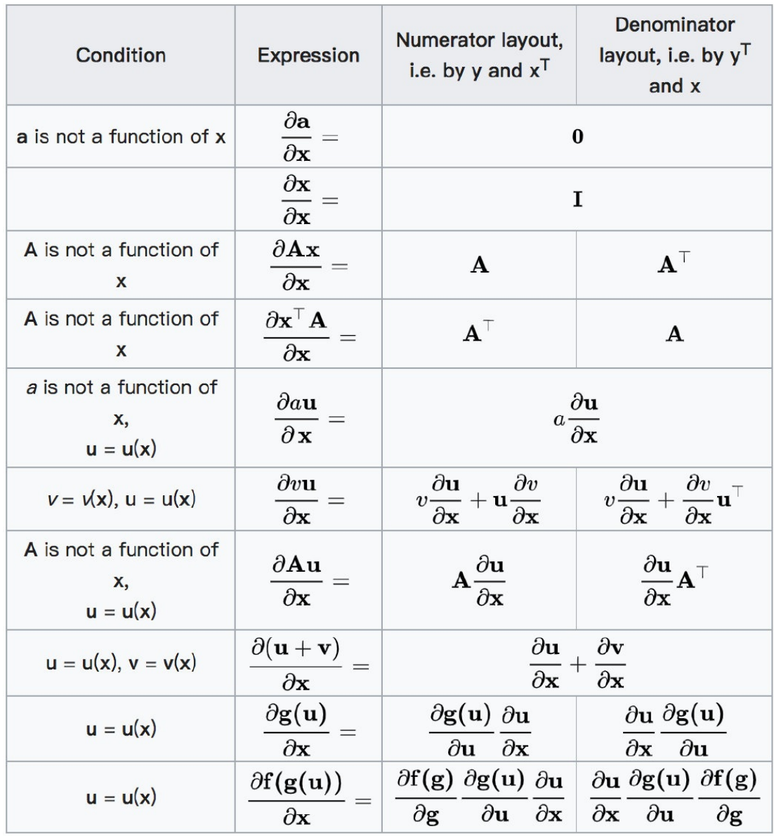 参考链接:https://en.wikipedia.org/wiki/Matrix_calculus#Scalar-by-vector_identities