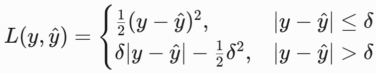 - 结合MSE和MAE,对离群值鲁棒且优化稳定。