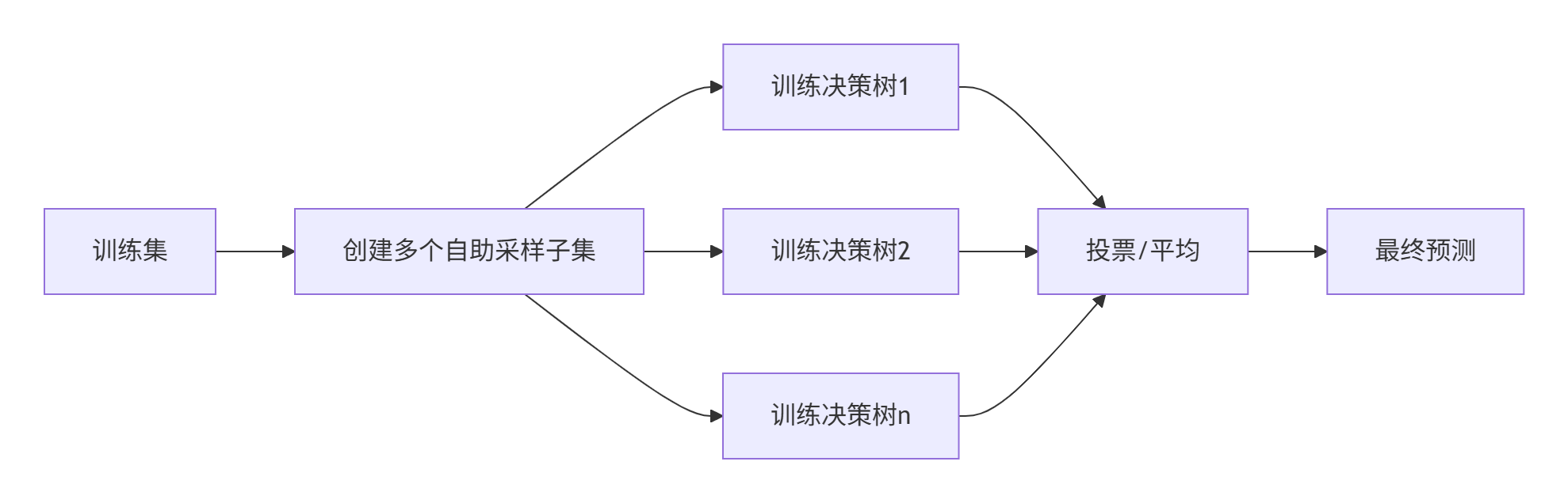 随机森林通过构建多个决策树并集成它们的结果来提高模型性能: