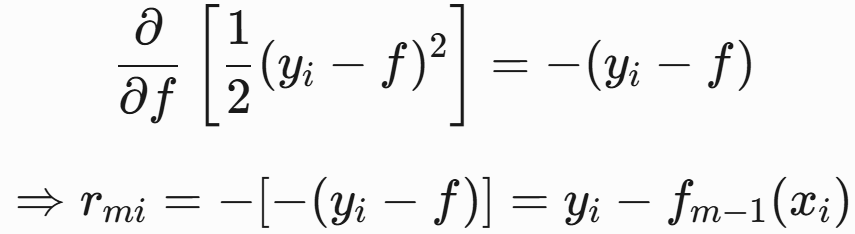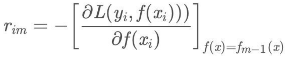 - (a)对每个样本i=1,2,...,N,计算负梯度,即残差