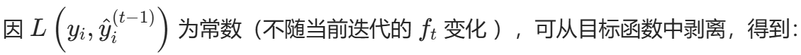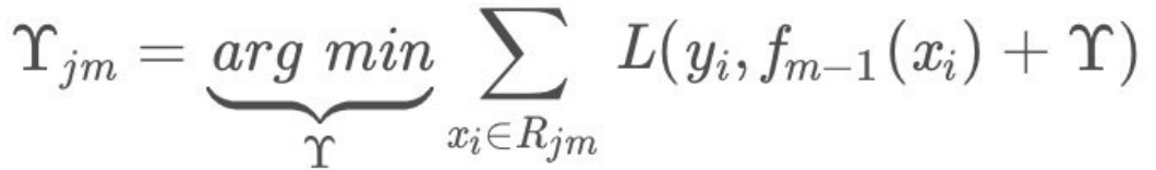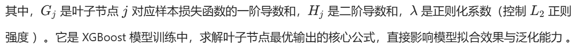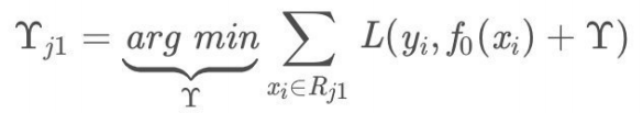 这⾥其实和上⾯初始化学习器是⼀个道理,平⽅损失,求导,令导数等于零,化简之后得到每个叶⼦节点的参数Υ,其实就是标签值的均值。这个地⽅的标签值不是原始的 y,⽽是本轮要拟合的标残差 y − f (x).