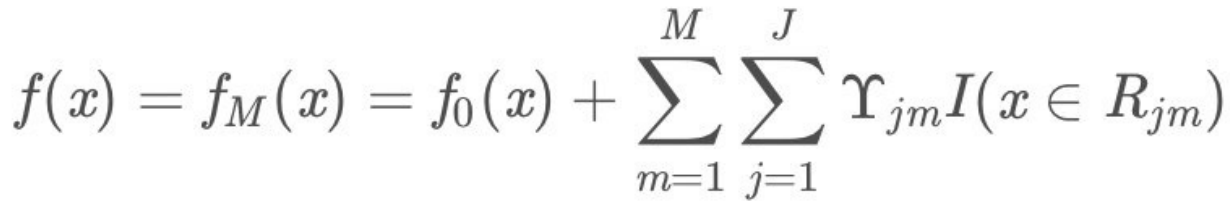 - (b)将上步得到的残差作为样本新的真实值,并将数据(xi, rim),i = 1, 2, ..N作为下棵树的训练数据,得到⼀颗新的回归树fm(x)其对应的叶⼦节点区域为Rjm, j = 1, 2, ..., J。其中J为回归树t的叶⼦节点的个数。