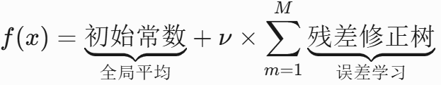 此时我们的树深度满⾜了设置,还需要做⼀件事情,给这每个叶⼦节点分别赋⼀个参数Υ,来拟合残差。