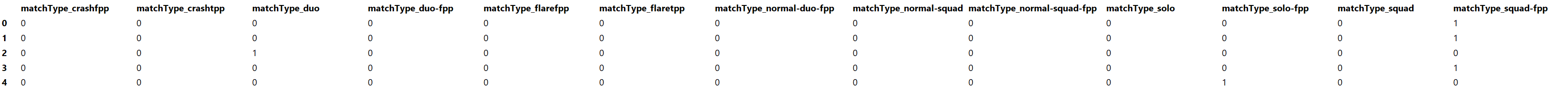 - String identifying the game mode that the data comes from. The standard modes are “solo”, “duo”, “squad”,“solo-fpp”, “duo-fpp”, and “squad-fpp”; other modes are from events or custom matches.