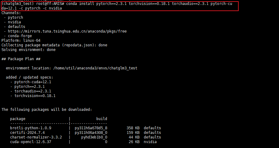 conda install pytorch==2.3.1 torchvision==0.18.1 torchaudio==2.3.1 pytorch-cuda=12.1 -c pytorch -c nvidia