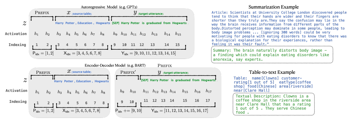 该方法其实和构造Prompt类似,只是Prompt是人为构造的“显式”的提示,并且无法更新参数,而Prefix则是可以学习的“隐式”的提示。但是这个Prefix 并不是一些明确的单词,比如对于文本摘要任务来说,我们添加 this is summarization(明确指出这是一个摘要的任务),相反,这个prefix加的是一些隐式的Token。这里就需要了解两个概念: