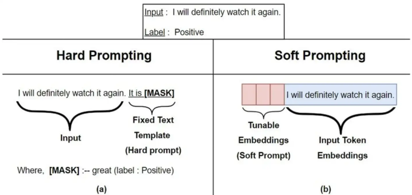 Soft Prompt:也称连续Prompt,通常是在向量空间优化出来的提示,通过梯度搜索之类的方式进行优化;