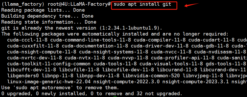 在执行命令之前,需要先安装git软件包,执行命令如下: