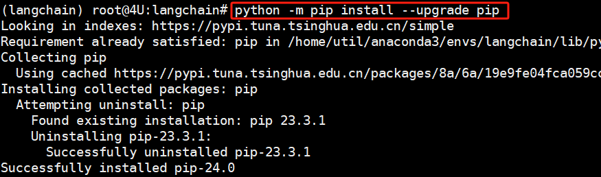 LangChain可以使用pip 或者 conda直接安装,适用于仅使用的场景,即不需要了解其源码构建过程。这种安装方法十分简洁明了,只需执行一条命令,就可以在当前的虚拟环境中迅速完成LangChain的安装。具体操作如下: