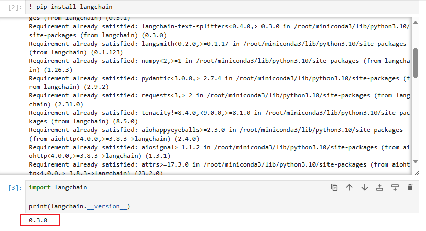 重启完当前的Jupyter Lab后,验证LangChain的安装情况,执行命令如下: