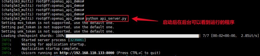 调整好网络端口后,在服务器终端启动api_server.py文件即可实现服务器和局域网内终端的互联。