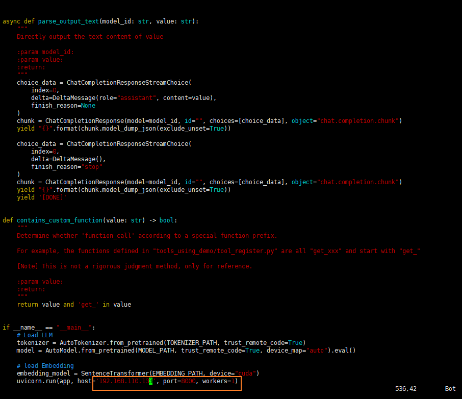在服务器终端打开api_server.py文件修改并保存IP地址和端口号并保存退出。