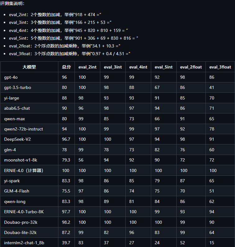 考查大模型的数学基础能力可以设计以下测试题目,涵盖1000以内的整数加减法和不超过2位有效数字的浮点数加减乘除。