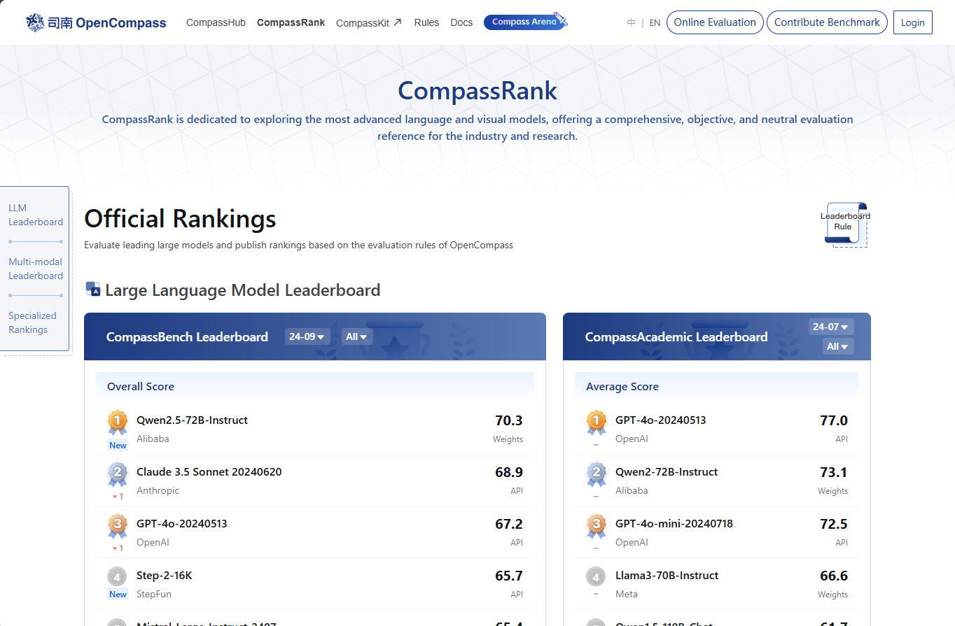官网地址:https://rank.opencompass.org.cn/home