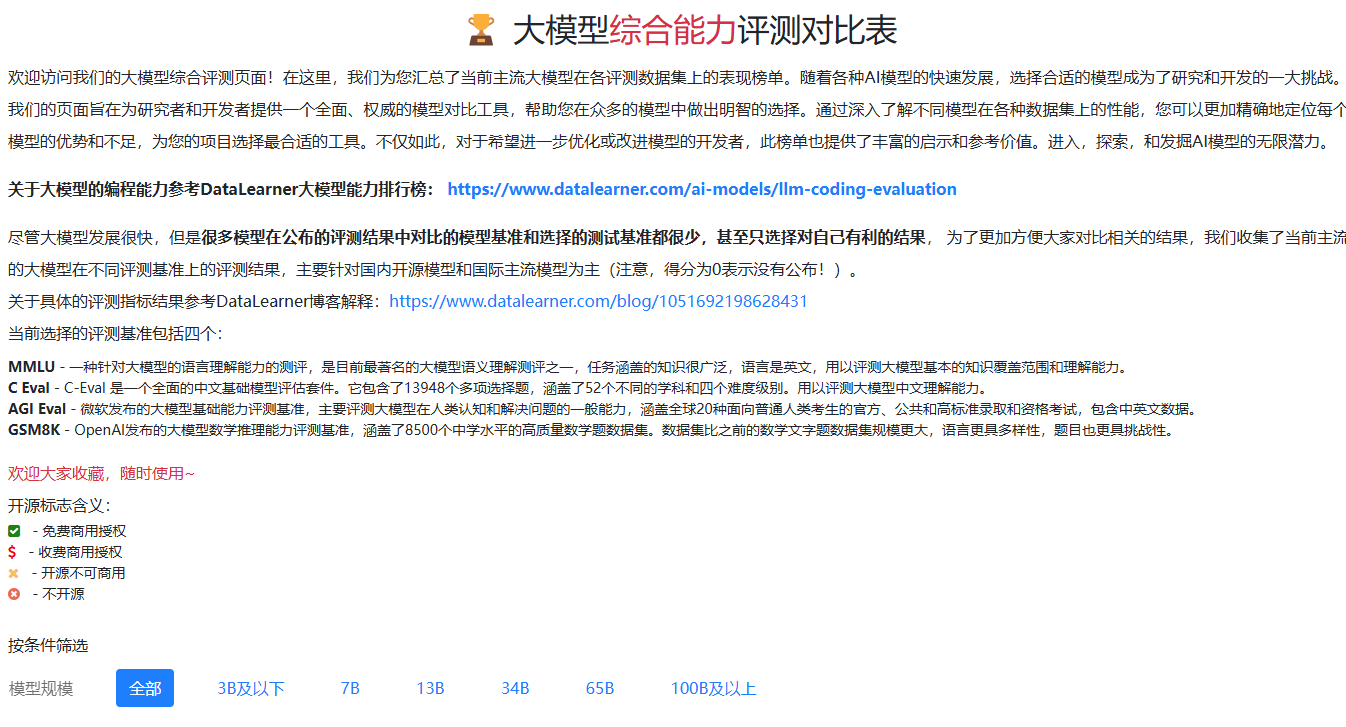 官网地址:https://www.datalearner.com/ai-models/leaderboard/datalearner-llm-leaderboard