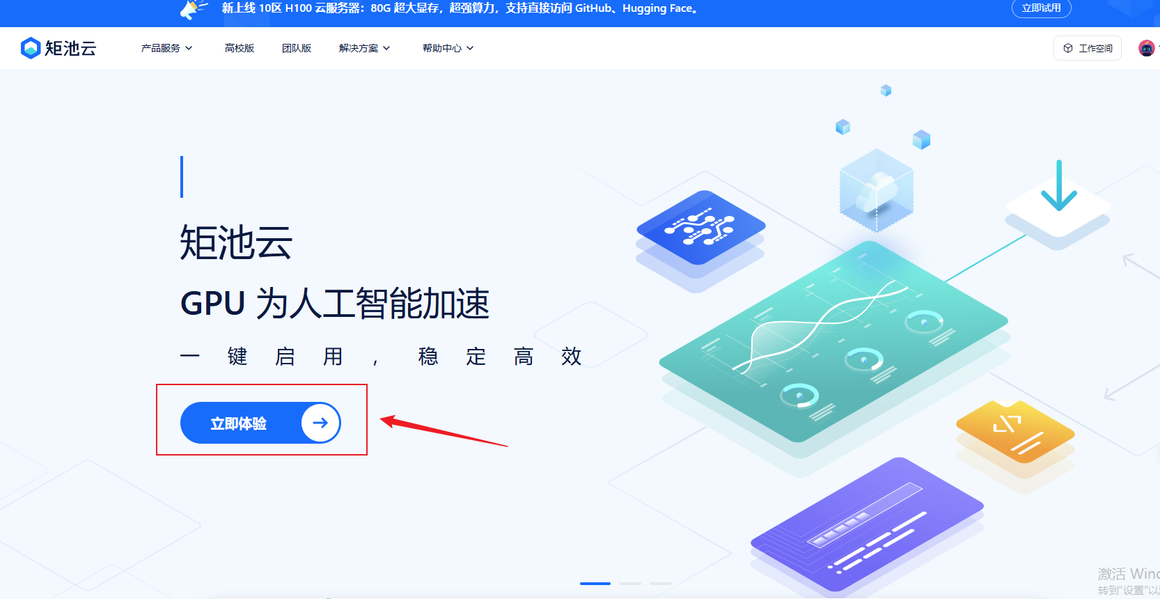 完成注册登录后即可开启在线算力租赁环节,通过图中方式实现进入: