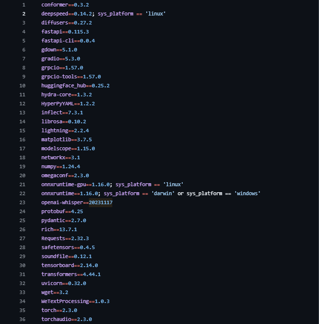 文件包含了项目运行所必需的所有 Python 包及其精确版本号。使用pip一次性安装所有必需的依赖,执行命令如下: