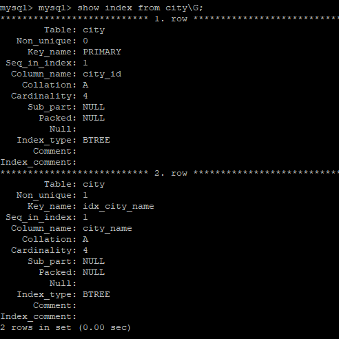 CREATE [UNIQUE|FULLTEXT|SPATIAL] INDEX index_name [USING index_type] ON tbl_name(index_col_name,...) 说明: [UNIQUE|FULLTEXT|SPATIAL] :指定创建索引类型(可选) [USING index_type]:使用哪一种结构的索引,不指定默认使用B+Tree