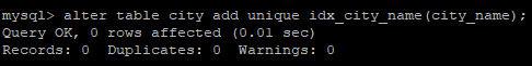 1). alter table tb_name add primary key(column_list); 该语句添加一个主键,这意味着索引值必须是唯一的,且不能为NULL 2). alter table tb_name add unique index_name(column_list); 这条语句创建索引的值必须是唯一的(除了NULL外,NULL可能会出现多次) 3). alter table tb_name add index index_name(column_list); 添加普通索引, 索引值可以出现多次。 4). alter table tb_name add fulltext index_name(column_list); 该语句指定了索引为FULLTEXT, 用于全文索引