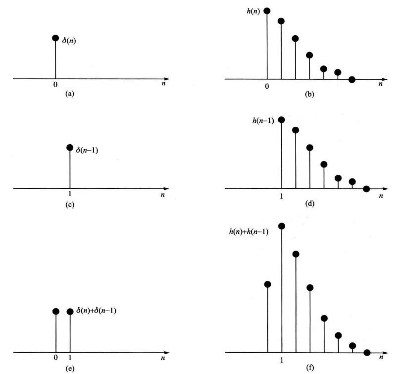 将输入信号分解为不同加权系数的单位冲激信号x(m)δ(t-m),对h(n)加权x(m)并延时m: