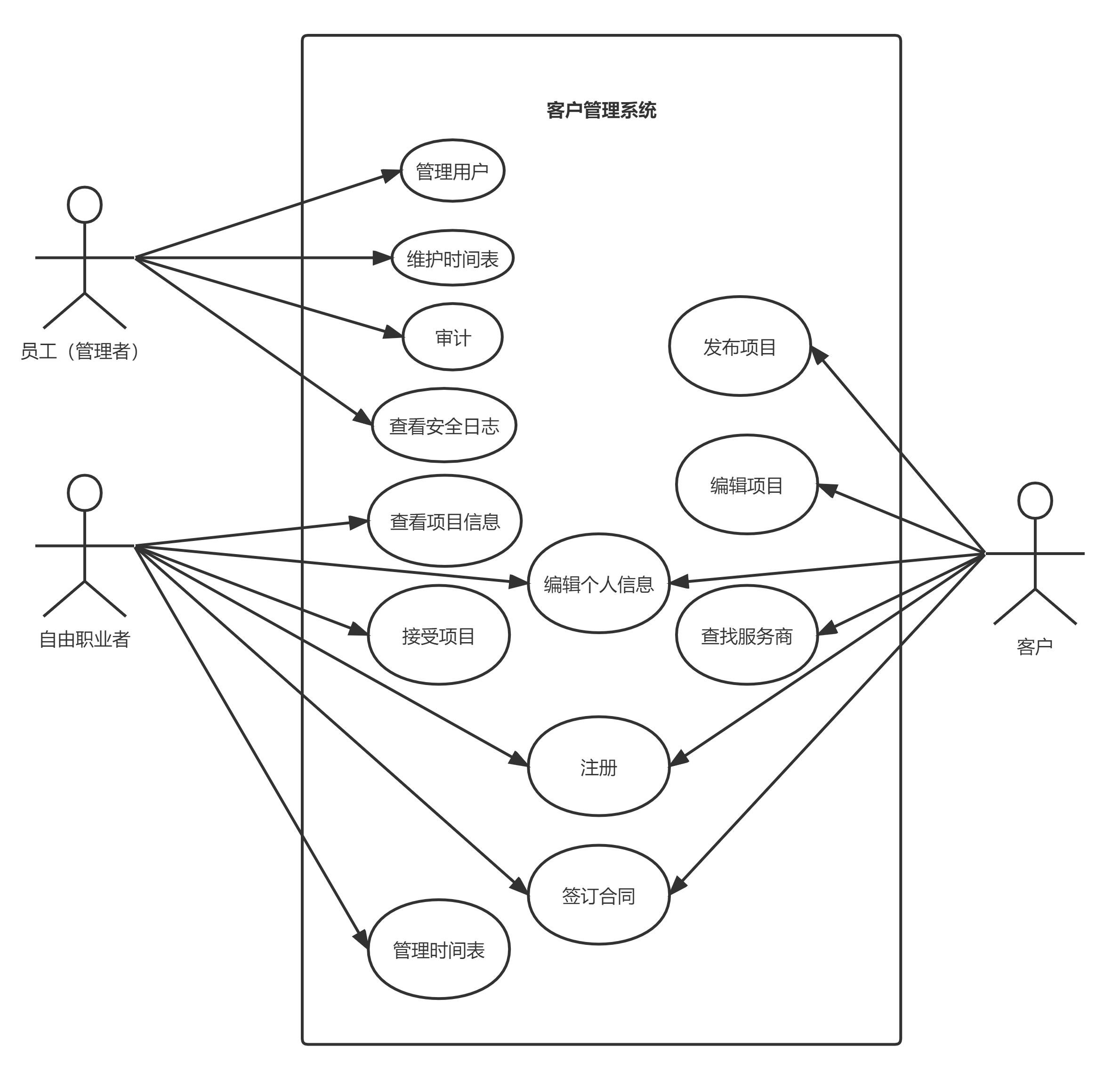 一家公司提供服务出租,自身有一些员工,另外还有很多自由职业者作为服务商存在。公司目前使用Excel工作表来管理他们的客户(自由职业者),时间表等。Excel解决方案无法很好地进行扩展。它无法应对多用户使用的场景,也不提供安全和审计日志。因此他们决定构建一个新的基于Web的解决方案。以下是核心要求:
