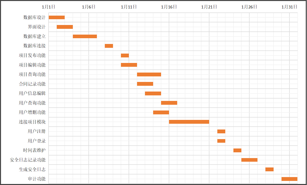 | 时间表模块 | 时间表维护 | 5h | 1月24日 | 1月25日 |