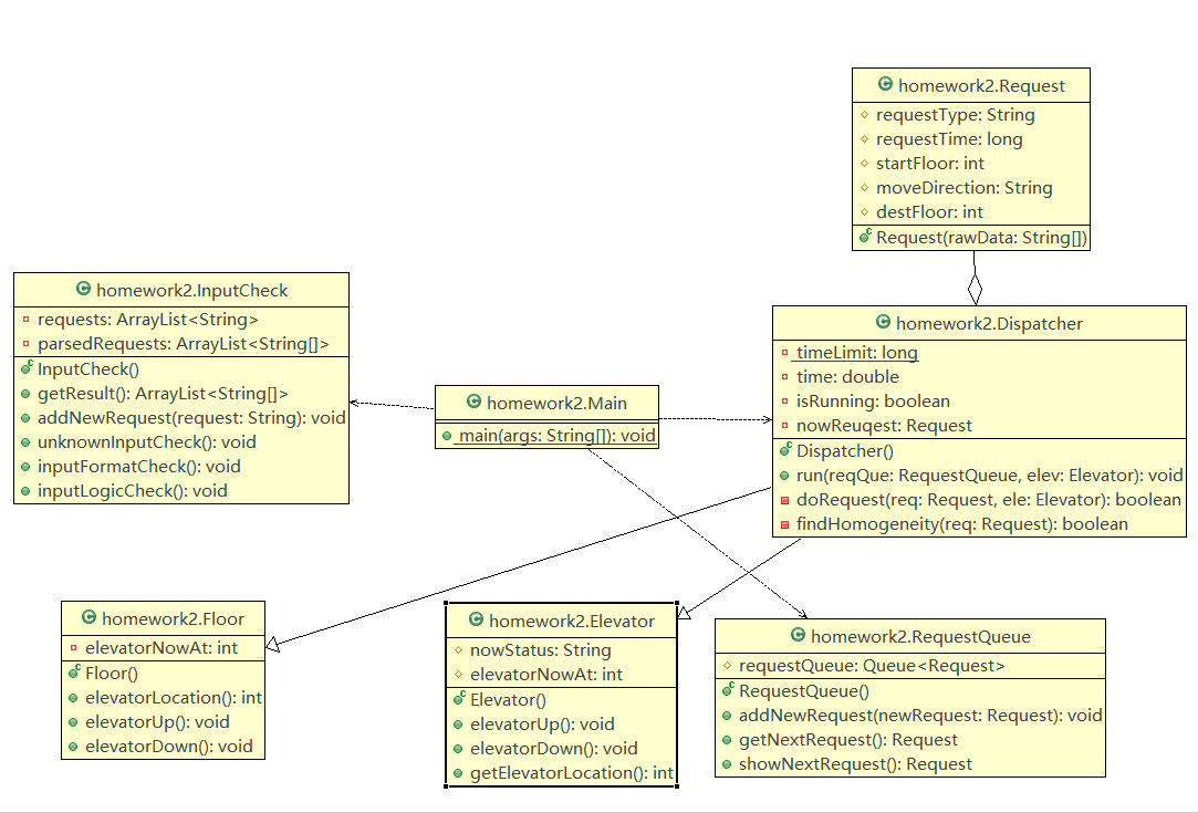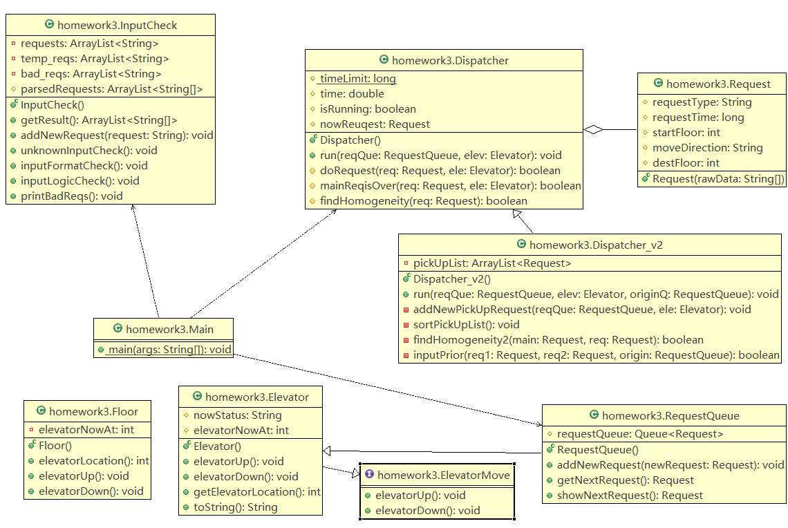 OO第一次作业其本身的作业内容要注意的不多,更多需要注意的是诸如测试,提交这样的一些细节问题。但是从第二次作业开始,OO这么课程就开始动真格了。如果说第一次作业只是热身,那么第二次作业就是实战了。第二次作业的内容是实现一个非常傻瓜式的电梯程序,但是毕竟这是一个综合性的程序(从指导书的长度就能看出它有多综合了),我们仍不能掉以轻心。首先还是要熟读指导书,建议多读几遍,将一些关键的部分(比如加粗或标红的地方)用自己的话写下来,虽然当时你可能认为记不住但是一些正确的片段记忆可能在你编程的时候带来潜移默化的影响。当对指导书中的规范比较熟悉之后,我们可以开始进行整个程序的构思了。正所谓磨刀不误砍柴工,在码代码之前一定要好好地构思,千万不要等码代码的时候脑子被绕晕了或者发现你少考虑了一些很重要的事情的时候再来后悔。。。(当然假如你是dalao那当我没说,orz)不光要对本次的程序进行完善的构思,还要联想到程序的可扩展性,大家在做第二次作业的时候可能都多多少少从学长学姐们处了解到了电梯作业不止这一次,也就是说你这次的代码很有可能在下次作业的时候还能派上用场,所以说千万别放飞自我在写程序的时候随心所欲地乱改。要不然等到下次作业的时候你需要用某部分代码但是你连你当时怎么想的都不知道(注释一定要写详细,简短的注释不一定有用(至少对我来说是这样))。细节方面的东西就不再详细说了,就说一点,关于时间模型的构建问题。我是用的for循环作为时间模型的方法,这个方法非常符合正常思维,但是缺点是当时间数据过大的时候速度会变慢(我还因此被扣了个incomplete,虽然我后来才知道可以不用扣的);据我所知还有一些同学有其他的方法,不过好像在做第三次作业的时候遇到了一些比较难解决的问题。我表达的就是在构建某个模型的时候一定要想想它的实用性和可扩展性,不要为了一时的爽而让自己后来的工作变得麻烦无比。在这次作业中我不幸分到了一个dalao的程序,任凭我怎么找都没找出他的bug,而我自己则被找出了一个开关门边界判断的bug,看来对边界问题的处理上还有待加强。