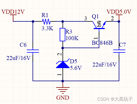 在设计产品的过程中,有的产品会有着极其严苛的成本要求,连一个2-3毛钱的3.3V LDO芯片都要省,要扣到极致。那个本次分享的电路,就是用来替代LDO的简单电路。电路图如下: