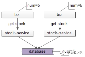 如上图所示,两个并发的操作,查询库存,都得到了库存是5。