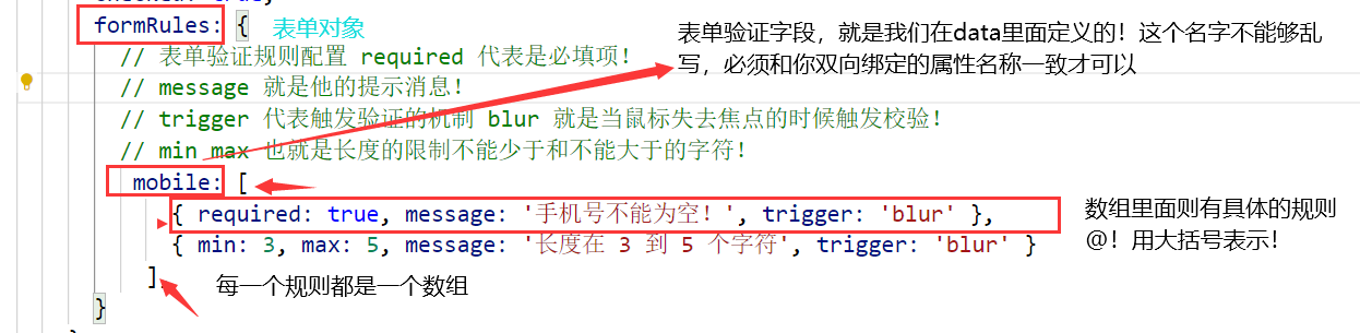 配置验证规则! 通过el-from 组件的 rules属性配置验证规则