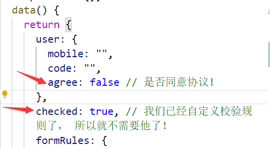 <!-- 要让复选框里的双向绑定到user.agree -->