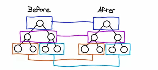 4.diff过程整体遵循深度优先、同层比较的策略;两个节点之间比较会根据它们是否拥有子节点或者文