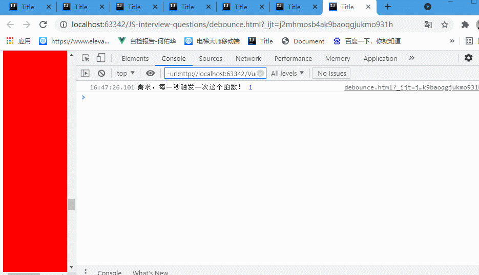 你可以发现我一直在在滚动,那么函数就一直不会被触发,但是我一旦停下来,一秒种之后,函数就会被触发了!