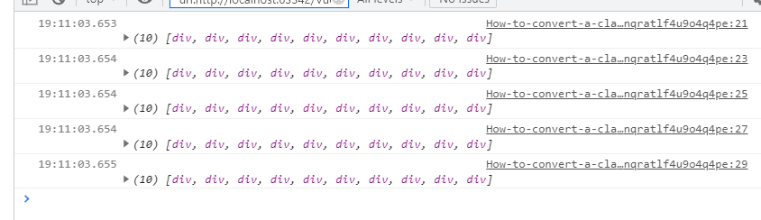 console.log([...arrayLike]); // [div, div, div, div, div, div, div, div, div, div]