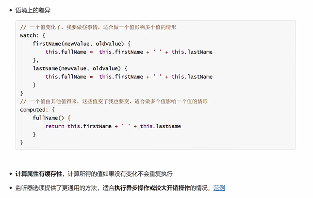 -2 处理数据的场景不同,监听器适合一个数据影响多个数据【一个值变化了,我要做些事情,适合做一个值影响多个值的情形】,