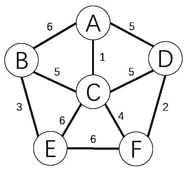 1 /****************************************************************** 2 * Name: 最小生成树的Prim算法(无向网) 3 * Date: 2022.01.24 4 * Author: 吕辉 5 * Description: 求最小生成树(Minimum Cost Spanning Tree)的Prim算法是 6 * 利用最小生成树性质的一种贪心算法。适合稠密图(顶点多边少), 7 * 通过辅助数组closedge来依次查找最小代价的邻接顶点,直至 8 * 所有顶点全部遍历。 9 *******************************************************************/ 10 #define _CRT_SECURE_NO_WARNINGS 11 #include <stdio.h> 12 #include <stdlib.h> 13 14 #define MAXVEX 20/*最大顶点数*/ 15 #define INFINITY 32767/*权值最大值*/ 16 typedef struct 17 { 18 int vexnum;/*顶点数*/ 19 int arcnum;/*弧数*/ 20 char vex[MAXVEX];/*顶点信息*/ 21 int arcs[MAXVEX][MAXVEX];/*弧的权值*/ 22 }AdjMatrix;/*邻接矩阵*/ 23 24 void Create(AdjMatrix* G); 25 int LocateVex(AdjMatrix* G, char vex); 26 void Prim(AdjMatrix* G, int start); 27 28 int main(void) 29 { 30 AdjMatrix G; 31 Create(&G); 32 Prim(&G, 1); 33 system("pause"); 34 return 0; 35 } 36 /***************************************** 37 * Name: Create 38 * Call: Locatevex 39 * Called By: main 40 * Parameter: G 无向网 41 * Description: 创建无向网 42 ******************************************/ 43 void Create(AdjMatrix* G) 44 { 45 int i = 1; 46 int j = 1; 47 int k = 1; 48 int weight = 0; 49 char vex1 = '\0'; 50 char vex2 = '\0'; 51 52 printf("请输入顶点数和弧数(逗号分隔):"); 53 scanf("%d%*c%d", &G->vexnum, &G->arcnum); 54 /*初始化权值*/ 55 for (i = 1; i <= G->vexnum; i++) 56 { 57 for (j = 1; j <= G->vexnum; j++) 58 { 59 G->arcs[i][j] = INFINITY; 60 } 61 } 62 for (i = 1; i <= G->vexnum; i++) 63 { 64 printf("请输入第%d个顶点:", i); 65 scanf(" %c", &G->vex[i]);/*%c前有一空格用于吸收空白字符*/ 66 } 67 for (k = 1; k <= G->arcnum; k++) 68 { 69 printf("请输入第%d条弧的两个顶点和权值(逗号分隔):", k); 70 scanf(" %c%*c%c%*c%d", &vex1, &vex2, &weight); 71 i = LocateVex(G, vex1); 72 j = LocateVex(G, vex2); 73 G->arcs[i][j] = weight; 74 G->arcs[j][i] = weight; 75 } 76 } 77 /********************************************************** 78 * Name: LocateVex 79 * Called By: Create 80 * Parameter: G 无向网, vex 顶点 81 * Description: 若顶点表中存在该顶点则返回其在顶点表中的位置下标; 82 * 否则返回0 83 ***********************************************************/ 84 int LocateVex(AdjMatrix* G, char vex) 85 { 86 int i = 1; 87 for (i = 1; i <= G->vexnum; i++) 88 { 89 if (G->vex[i] == vex) 90 { 91 return i; 92 } 93 } 94 return 0; 95 } 96 /************************************************************ 97 * Name: Prim 98 * Called By: main 99 * Parameter: G 无向网, start 初始顶点下标 100 * Description: 通过辅助数组closedge来依次查找最小权值邻接顶点; 101 * 并打印查找到的最小权值的顶点和它的邻接顶点 102 *************************************************************/ 103 void Prim(AdjMatrix* G, int start) 104 { 105 struct 106 { 107 int adjvex; 108 int lowcost; 109 }closedge[MAXVEX] = { 0 };/*辅助数组*/ 110 111 int i = 1; 112 int j = 1; 113 int k = 1; 114 int minvex = 0;/*最小权值的邻接顶点*/ 115 int minweight = 0;/*最小权值*/ 116 117 closedge[start].lowcost = 0; 118 /*对除了出发点start以外的所有顶点初始化对应的closedge数组*/ 119 for (i = 1; i <= G->vexnum; i++) 120 { 121 if (i != start) 122 { 123 closedge[i].adjvex = start; 124 closedge[i].lowcost = G->arcs[start][i]; 125 } 126 } 127 128 /*控制选中的n - 1条符合条件的边*/ 129 for (i = 1; i <= G->vexnum - 1; i++) 130 { 131 /*选择最小权值的邻接顶点*/ 132 minweight = INFINITY; 133 for (j = 1; j <= G->vexnum; j++) 134 { 135 if (closedge[j].lowcost != 0 && closedge[j].lowcost < minweight) 136 { 137 minvex = j; 138 minweight = closedge[j].lowcost; 139 } 140 } 141 printf("%c--%c\n", G->vex[closedge[minvex].adjvex], G->vex[minvex]); 142 closedge[minvex].lowcost = 0;/*标记该顶点不会再次被遍历*/ 143 144 /*更新closedge数组*/ 145 for (k = 1; k <= G->vexnum; k++) 146 { 147 /*一旦发现有更小的权值出现,则更新closedge数组对应顶点的最小权值*/ 148 if (k != minvex && G->arcs[minvex][k] < closedge[k].lowcost) 149 { 150 closedge[k].adjvex = minvex; 151 closedge[k].lowcost = G->arcs[minvex][k]; 152 } 153 } 154 } 155 }
