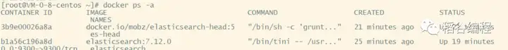 第六步,使用docker ps -a检查es是否正常启动,然后使用docker logs来查看该容器的日志。