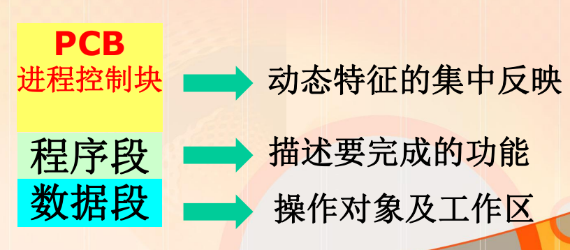 - 结构化:进程实体由代码段,数据段和进程控制块(PCB)组成。进程控制块包含在核心区。内存核心段通常存放OS核心部分,由各个进程共享,包括各进程的PCB。程序文件中通常划分为代码段和数据段