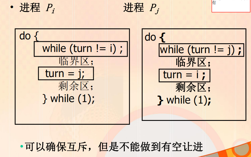 刚开始turn为i,i进程执行前面任务,没有进入临界区,但是j也进不去。