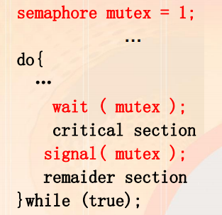 - wait(mutex)和signal(mutex)必须成对地出现。